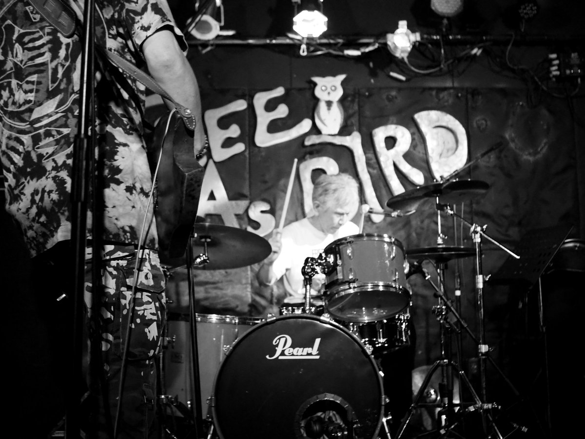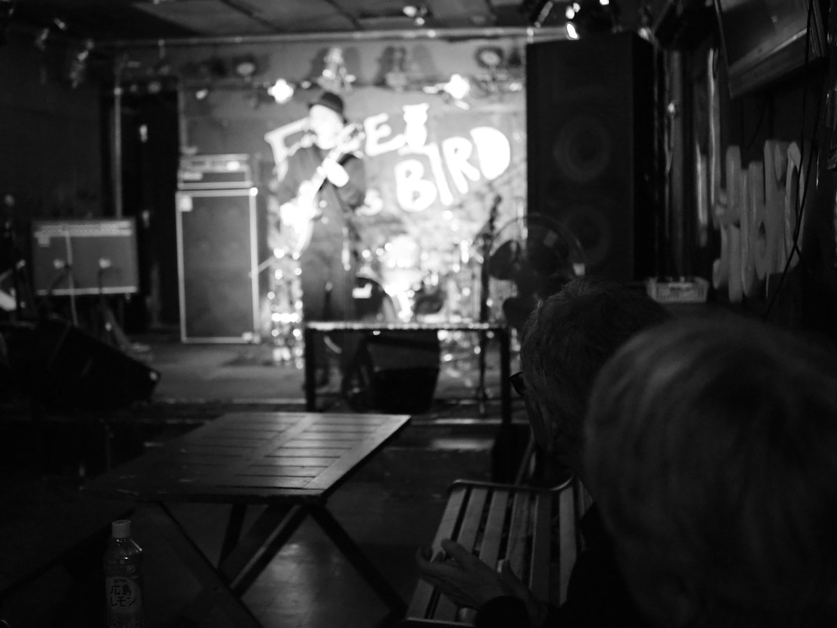 混迷の府中駅をようやく抜けて行った友人たちのライブは、実によかった。サイケデリックな太陽。ライブハウスに着くとリハの音がちょっと聞こえてきて、うわーこれはリハを聞いてしまってはもったいないと慌てて外に出て時間をつぶした。惚れ惚れする声に磨きがかかっている。テラドラムの音にも重みが増している。戸田はシュバーッっていう俺の30年前ギター知識にはない謎のエフェクターも使っていて、俺は府中駅ともども浦島太郎であった。