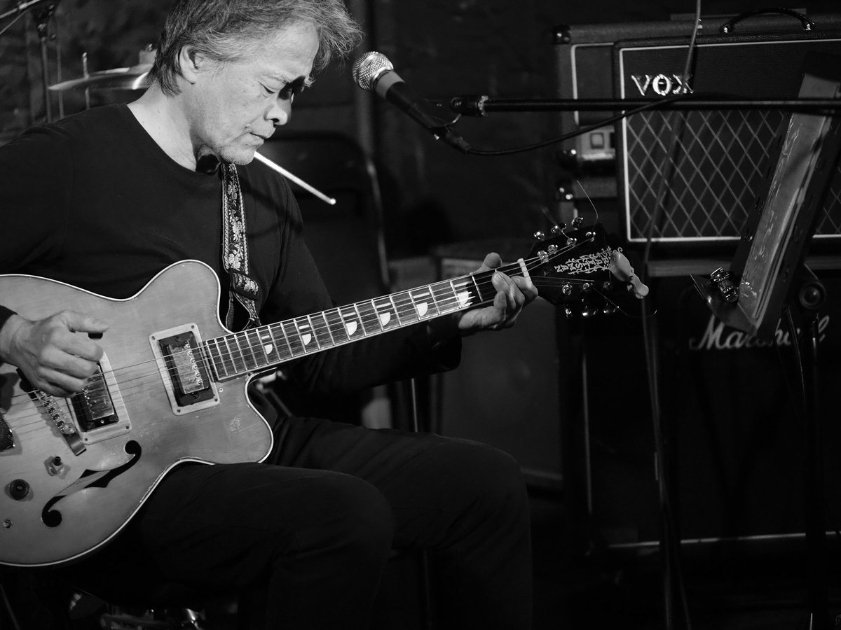 間にブルースのすんごくすんごくいいやつが入り(Send Me Some Lovingをやってくれトモテラその人の3人で合唱になった)、ミュータンツ。普通のギタリストの4倍くらいの仕事量で指が働く森田氏の演奏は全編楽器がうますぎて俺は愉快痛快笑ってしまうのだが(演奏力が人間業じゃないからミュータントなのかも)、人類史上最強レベルでキレのある森田ギターとテラのキレがぴったり合わさってすさまじくタイトな音になっていた。サックスの方がベース音を鳴らしているのも見事で、ベース不在を感じない。