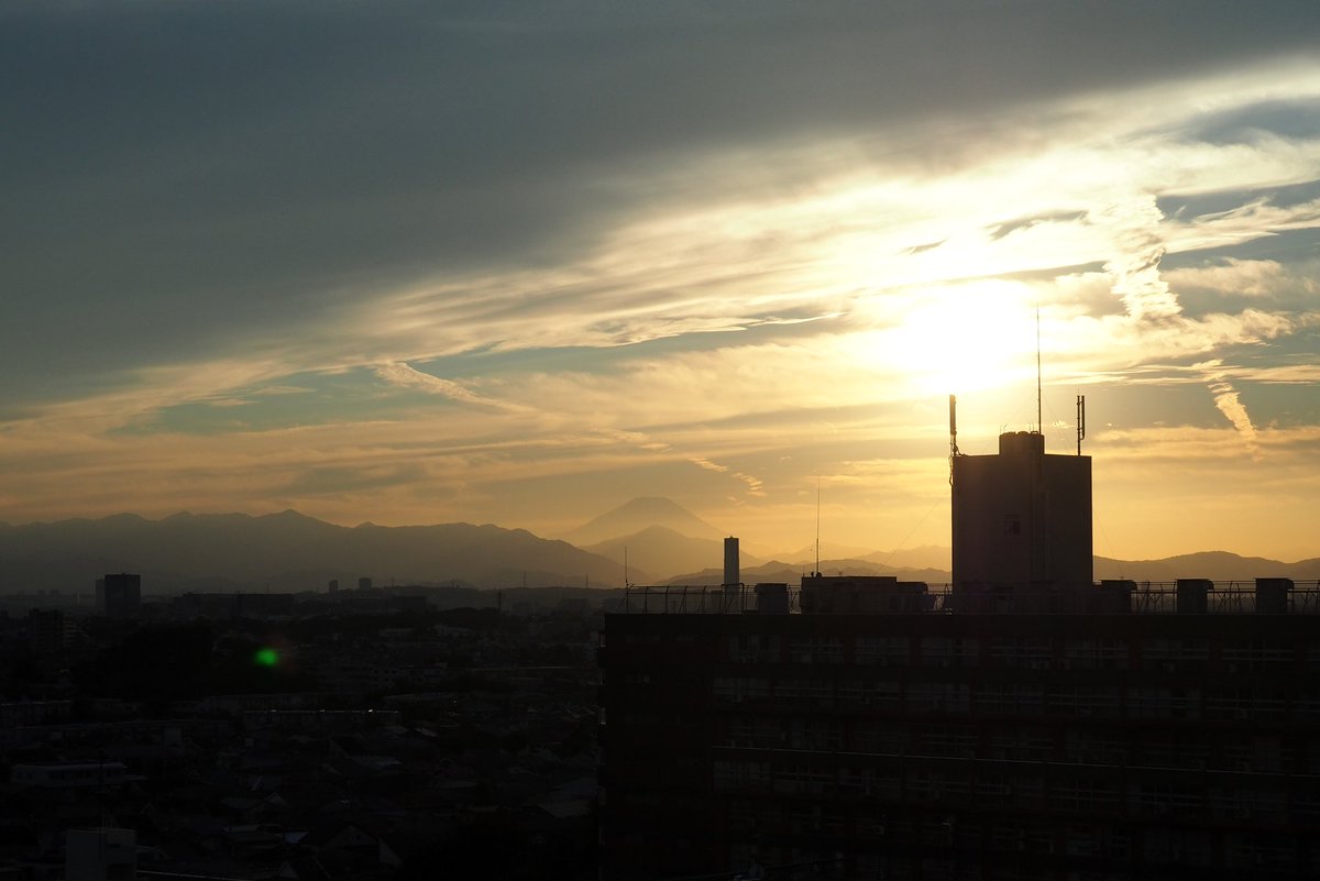 武蔵小金井のホステルの窓から富士山が見えた。去年吉祥寺に住んでた娘は、吉祥寺東急の屋上から富士山見えるんだよと力説していた。これがその光景だったんだね。